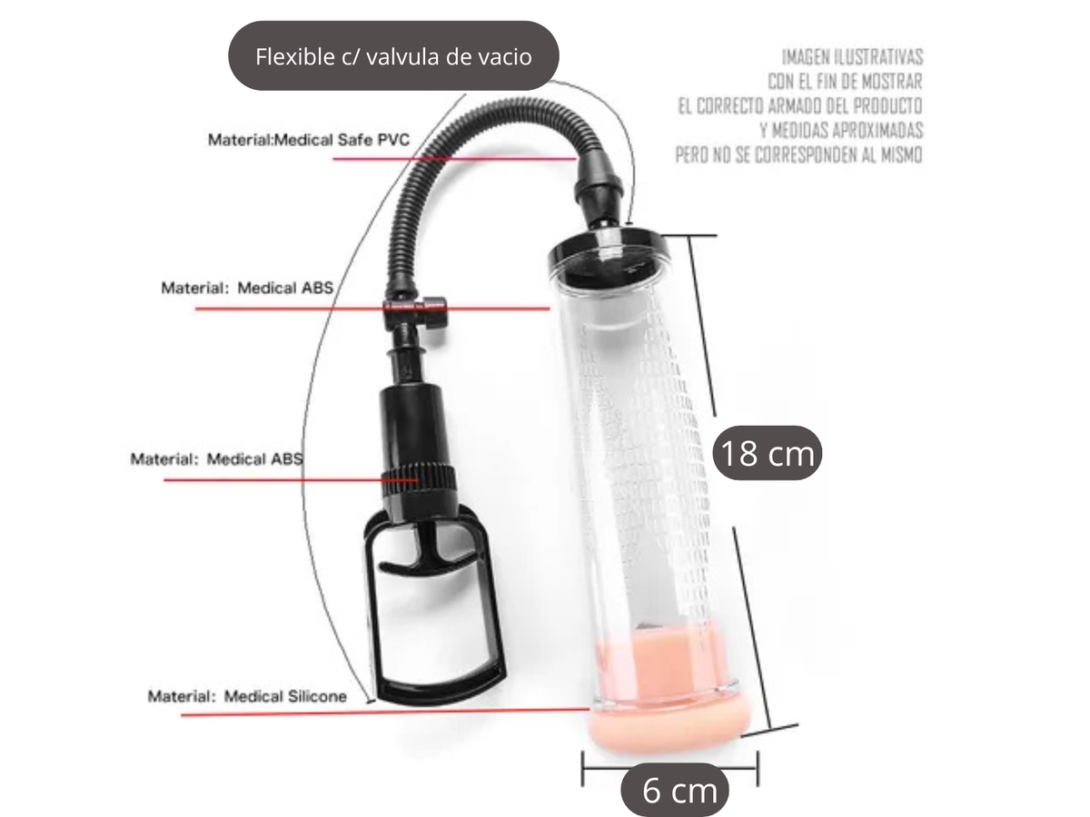Bomba peneana de vacio de succión para pene, eficaz para alcanzar una buena erección, consiste en un tubo plástico que se coloca sobre el pene, su bomba manual hace todo el trabajo!!