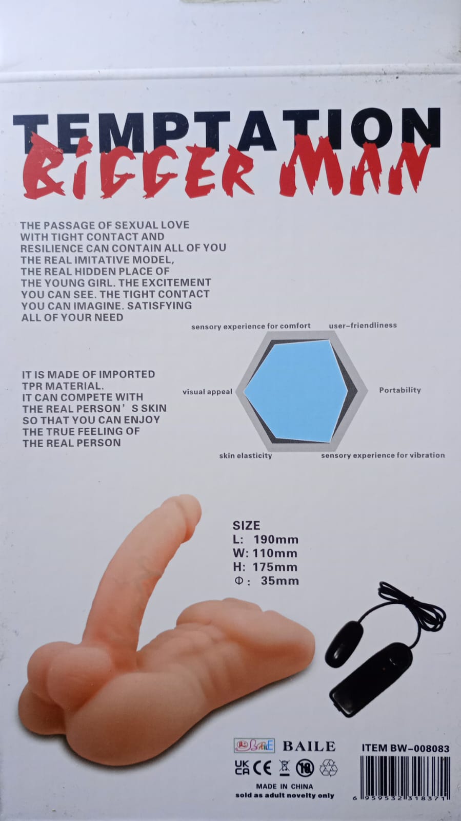 Su construcción en silicona y ABS asegura durabilidad y facilidad de limpieza. El Torso Bigger Man Vibrador es perfecto para quienes desean un compañero que combine realismo y funcionalidad. Disfruta de momentos de placer sin límites con este innovador producto.