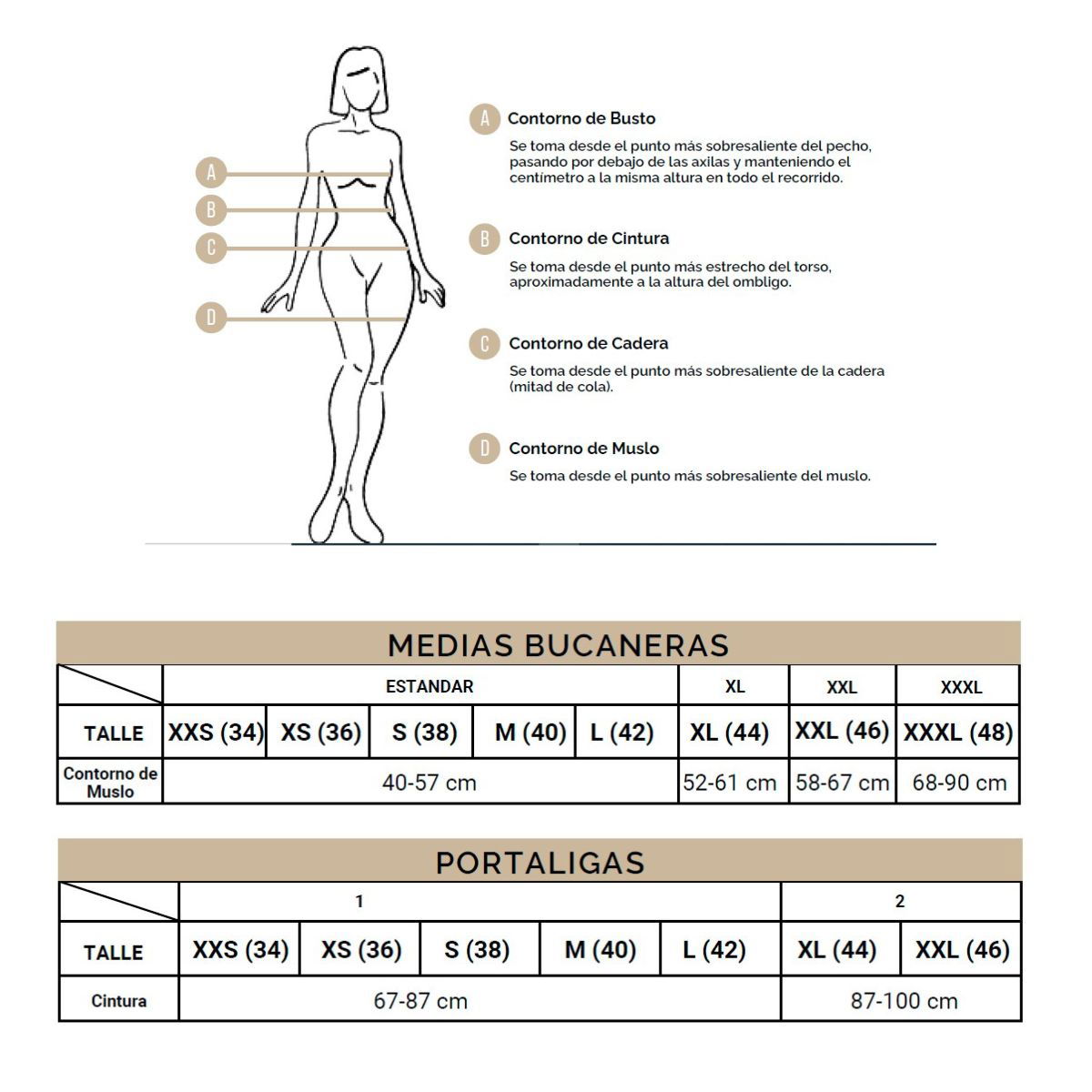 Las medias bucaneras tienen un diámetro máximo de entre 40 a 57 cm, y corresponde al talle 38-42 de pantalón , aproximadamente, color negro. Incluye portaligas de puntilla elastizada , color ROJO