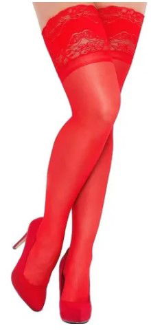 Completo combo de medias bucaneras en color ROJO , calidad premium, coronadas con un aro de puntilla de 16 cm, mas portaligas de puntilla elastizada , un fuego!!!